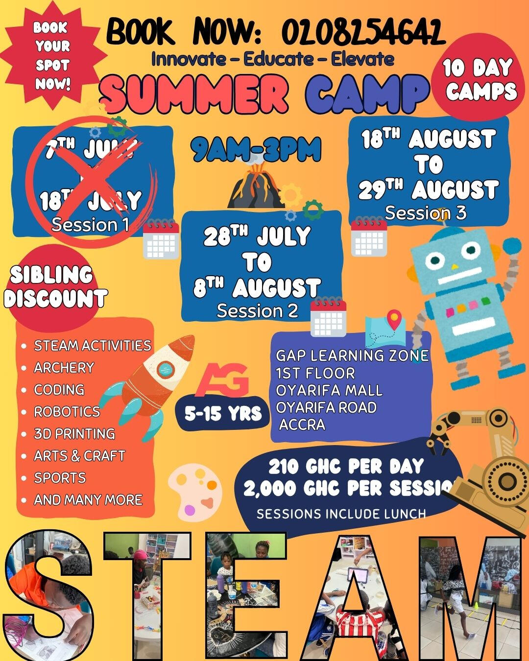 Our exciting, hands-on STEAM-based holiday camps are packed with fun challenges, creative projects, outdoor games, and teamwork activities — all designed to spark curiosity and confidence in a safe, inclusive environment.THE COUNTDOWN AS BEGUNSession 2 Starts on 28th July 2025📍 Location: Oyarifa, Accra